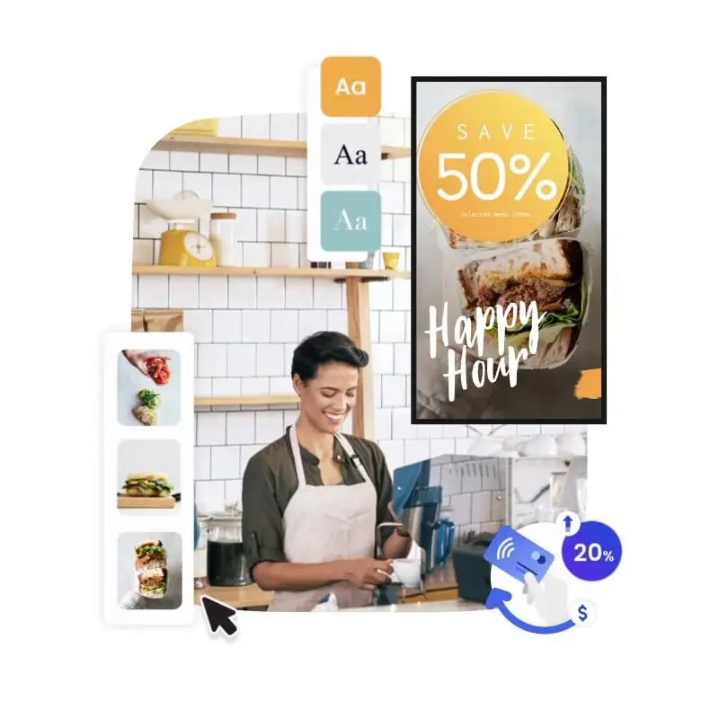 Easily design and update beautiful digital signs that communicate, engage and sell in your business or store.